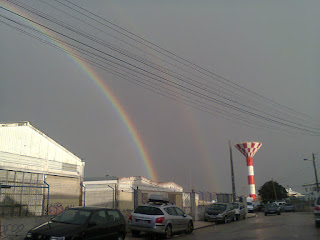 Este ano já vi três vezes este fenómeno, só consegui fotografar o último, a fotografia não é de muito boa qualidade mas se repararem bem existe um segundo arco-íris à direita do primeiro com menos intensidade das cores.