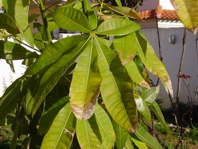 Demorei algum tempo a classificá-la, e com supresa confirmei que se tratava da Pachira aquatica Aubl. Uma árvore brasileira das zonas húmidas do Amazonas, estranhei bastante que se tivesse adaptado cá. Hoje é comum aparecer à venda como ornamental, muitas vezes com os troncos entrelaçados.